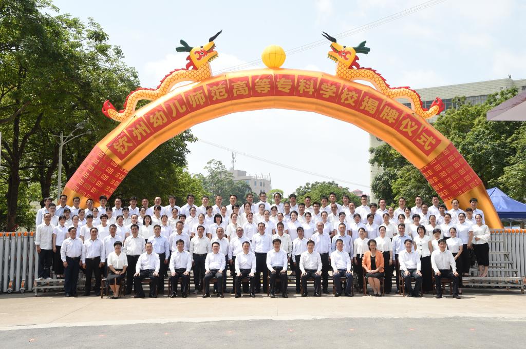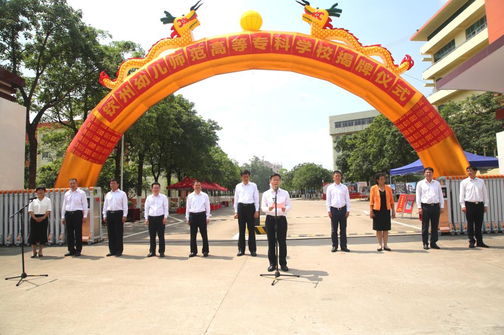在“六一”国际儿童节到来之际,2020年5月29日上午,钦州市委、市政府隆重举行钦州幼儿师范高等专科学校揭牌仪式。市委书记、自贸区钦州港片区工委书记许永锞,市委副书记、市长、自贸区钦州港片区工委副书记、管委会主任谭丕创,自治区教育厅副厅长李勇齐、市人大常委会副主任王文远、副市长蒙启鹏、市政协副主席罗志芳、北部湾大学党委书记赵君、自贸区钦州港片区管委副主任梁庆、市委秘书长方建安、市政府秘书长覃重等领导出席了揭牌仪式。仪式由蒙启鹏副市长主持。