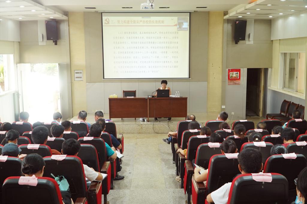田茂群同志从全面从严治党(治校)的重大意义、基本原则、长效机制等方面,结合身边的警示案例,为全体教职工上了一堂生动的党课。