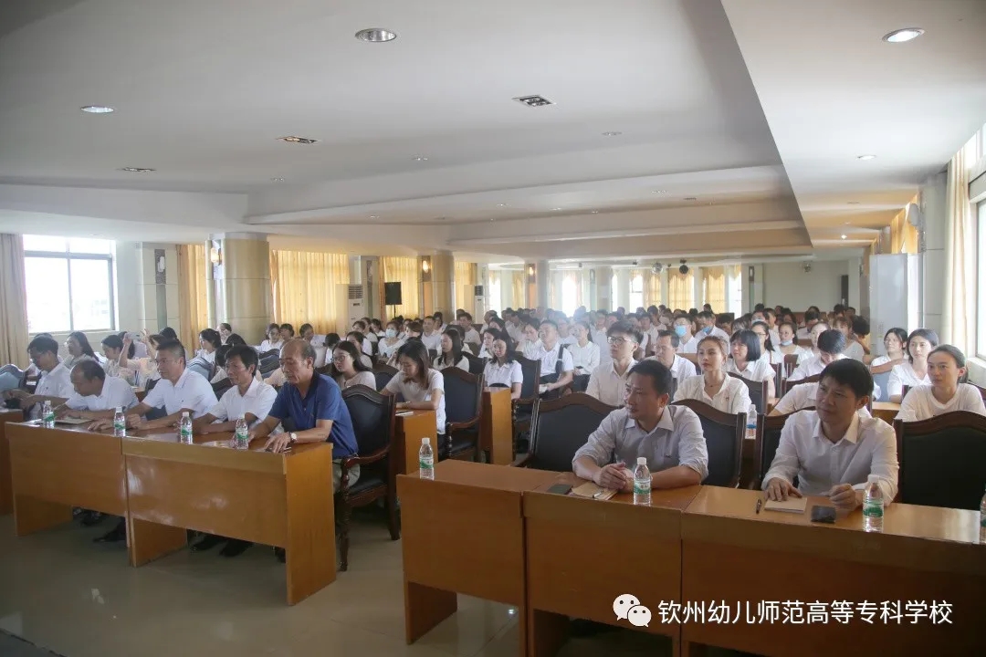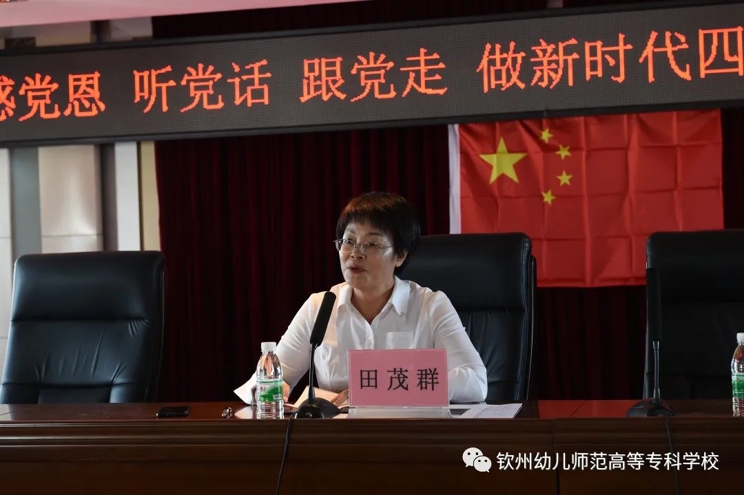 仪式最后,钦州市教育局党组成员、副局长,钦州幼专法人代表田茂群,以“感党恩,听党话,跟党走,做新时代‘四有’教师”为主题,给新教师和在合浦校区工作的全体老师上了党课。