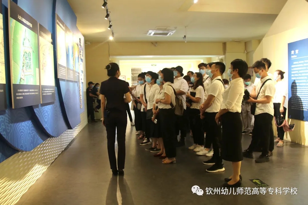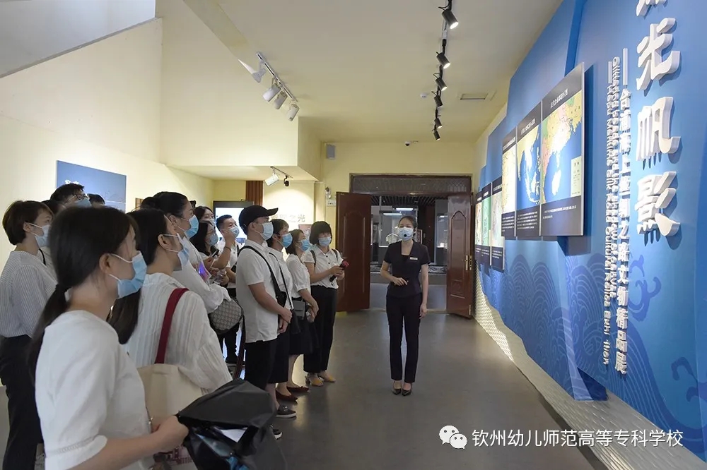 为拓宽青年教师的视野,增强文化自信,新教师们参观了合浦汉文化博物馆。那是区内唯一以汉文化展示为主的遗址类博物馆。走进馆里,只见西汉羽纹铜凤灯作凤鸟形,顾首回望,双足分立,尾羽下垂及地。羽纹系链铜小扁壶通体刻划有羽毛纹、菱形纹,记忆了中原汉文化和岭南越文化的交流融合。波斯陶壶、罗马玻璃碗、海蓝宝石等等展品,记载着汉朝与波斯等各国的经济和文化交往。