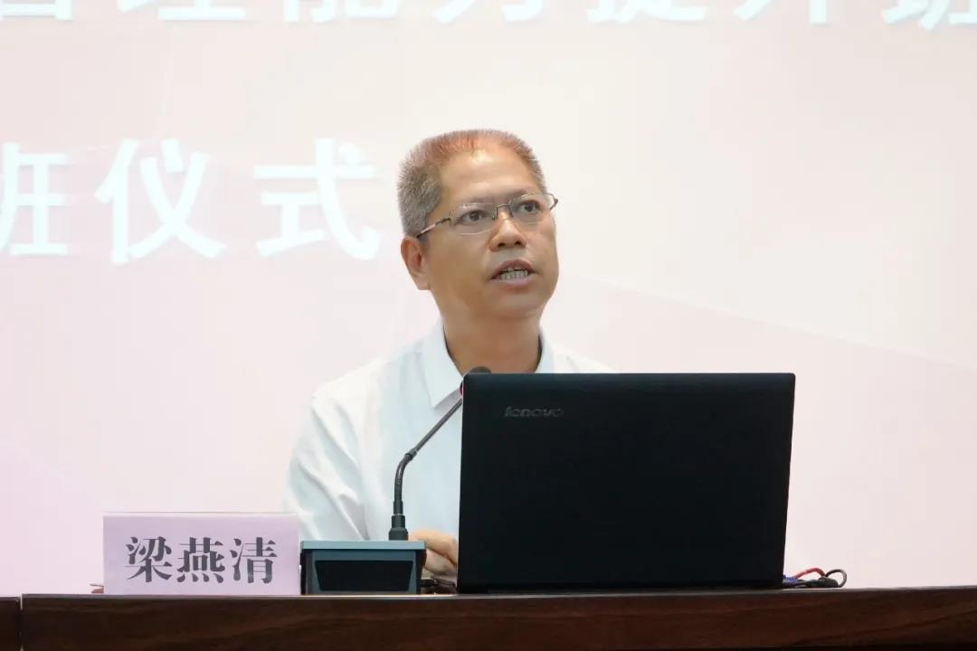 梁燕清校长为开班仪式致辞,梁校长在致辞中提出,钦州幼专老师要努力成为“德艺双馨,立己达人”的好老师,老师要做到德艺双修,还要懂得将修炼转化为教育智慧,形成育人成效,做到立己达人!