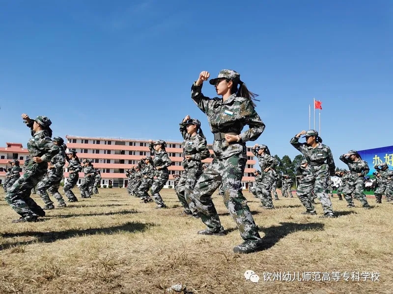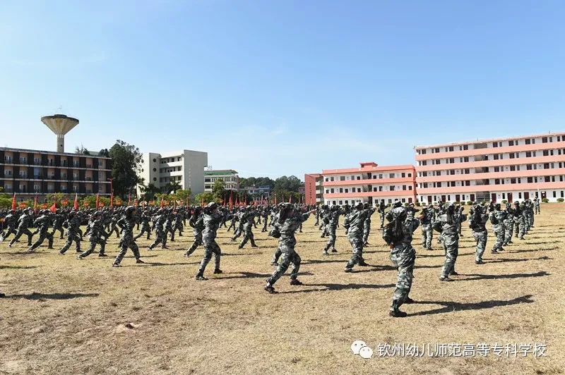 2020年10月22日上午,钦州幼专2020级新生进行了军训会操比赛。赛场上,同学们进行了立正稍息与跨立、停止间转法、蹲下与起立、敬礼与礼毕、齐步行进与立定、跑步行进与立定六个项目的比拼,你追我赶,精彩纷呈。