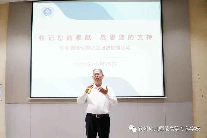 为了弘扬中华民族尊老敬老的优良传统,激发离退休教职工热爱祖国、关心教育、乐观开朗、积极向上的精神风貌,2020年10月25日上午,钦州幼专在第一会议室举行离退休教职工重阳节回访校园活动。70多名退休老教师们欢聚一堂,通过座谈和参观校园等方式,共同庆祝一年一度的重阳节。钦州市教育局党组成员、副局长,钦州幼专党委书记田茂群,副书记、校长梁燕清,副校长庄礼训、陈熙、颜循泽参加了庆?;疃?。