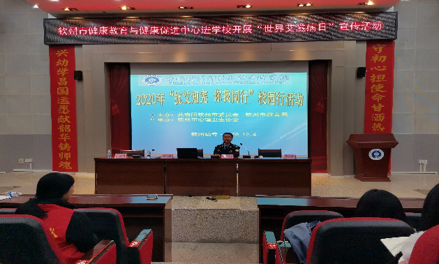 为切实履行高校艾滋病防控宣传教育职责,有效提高学生艾滋病防控知识知晓率和自我?;ひ馐叮?020年12月4日由共青团钦州市委员会与钦州市教育局主办,钦州市心理卫生协会承办的“抗艾知宪,你我同行”校园防艾宣传与法治教育讲座在钦州幼儿师范高等专科学校5号教学楼东报告厅开展。