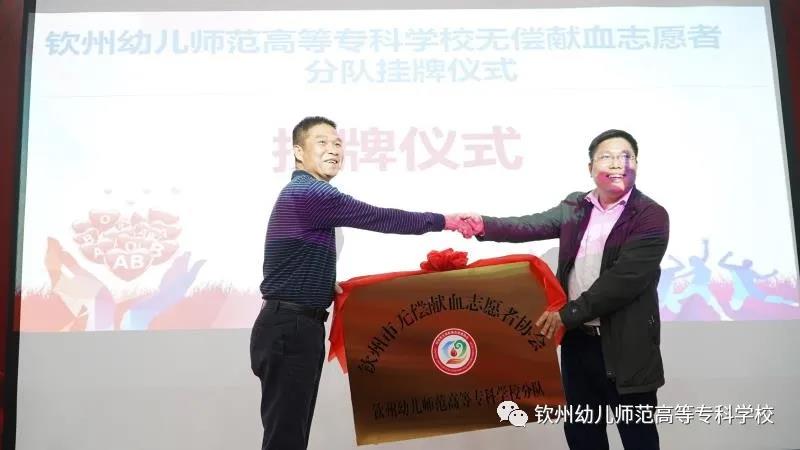 钦州幼专无偿献血志愿者分队挂牌仪式