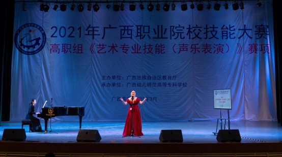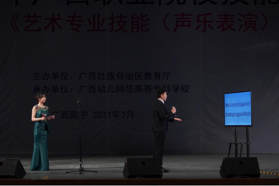 3月23日至24日,2021年广西职业院校技能大赛高职组艺术专业技能(声乐表演)赛项在广西幼儿师范高等专科学校南宁校区隆重举行。本次比赛吸引了来自桂林师范高等专科学校、广西幼儿师范高等专科学校、广西艺术学院职业技术学院等全区16所高职院校共47名选手参赛。