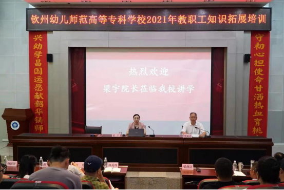 同时,学校还邀请到了钦州市的专家、领导进行讲学。钦州市委教育工委书记、钦州市教育局党组书记、局长赖廷耀到我校作《种好意识形态“责任田”——助推钦州教育高质量发展》专题讲座,我校广大教职工要充分认识意识形态工作的极端重要性,切实落实我校意识形态工作,守好学校意识形态阵地。钦州市委副秘书长李云仙作《公文业务知识》的专题讲座,深入细致地讲解了公文业务的相关知识,为我校教职工答疑解惑。除此之外,钦州市政协原副主席何敏成亲自带领我校新进教职工前往钦州港进行现场教学,鼓励新进教职工做钦州的知情者、宣传者、建设者和受益者,成为未来钦州最美建设者。