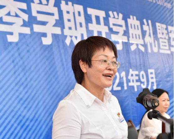 开学典礼上,教师代表秦圣男作了发言,她表示,要为教育事业赓续奋斗,不仅要从“新”出发,还要从“心”出发,努力成为一名好老师。新生代表叶莹同学在发言中呼吁同学们做到尽快适应大学生活,适应身份转变,树立远大目标;共同营造团结友爱的同窗氛围;尊师肯学,持之以恒;努力提高自己的实践能力,将学用于行。