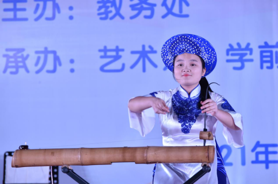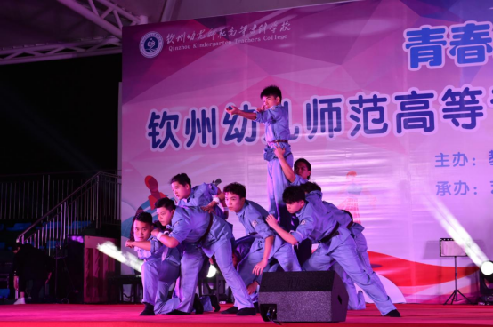 晚会中,乐队演奏 《山?!匪布涞闳既」壑诘娜惹椋攘业恼粕突逗羯砘岬男蚰?;器乐合奏《彩云追月》、《军队进行曲》、《阳光洒满的金色麦田》借助声音的力量展现学子蓬勃向上的朝气;独弦琴演奏《京家阿伯踩竹乐》展现了国乐的魅力以及独特的京族民族风;朗诵《祖国啊,我亲爱的祖国》和《我有祖国,我有母语》用饱含青春的力量弘扬了钦幼人的爱国精神;20级学前教育专业的同学带来的《大山支教》,用舞姿表达了钦幼师生初心不忘当师志,发出共筑教育梦的誓言;六人携手演唱《我爱你中国》,用歌声表达钦州幼专学子对祖国的热爱与祝福;《南海前哨》在力量与激情中彰显不爱红装爱武装的决心。