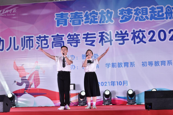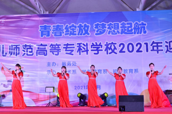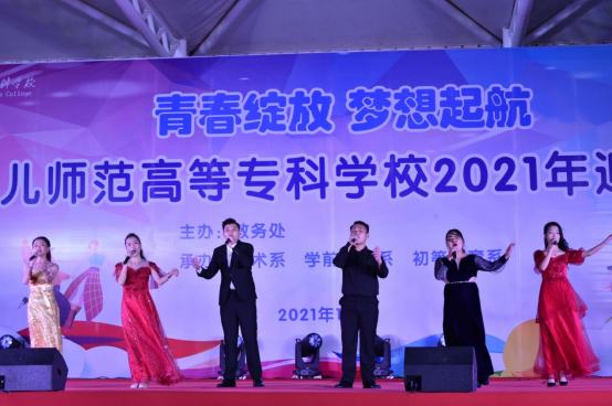 “青春绽放,梦想起航”钦州幼专2021年迎新生文艺晚会于10月21日晚上19:30在学校田径场精彩上演。党委委员、副校长庄礼训,党委委员、副校长颜循泽,副校长邓秋晓以及学校各部门领导、老师和全体学生一同观看了演出。