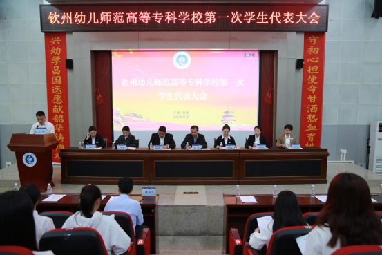 上午9点,钦州幼儿师范高等专科学校第一次学生代表大会在庄严的国歌声中隆重开幕。
