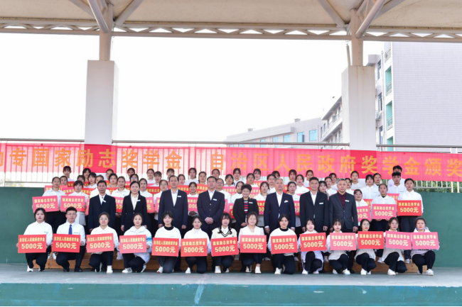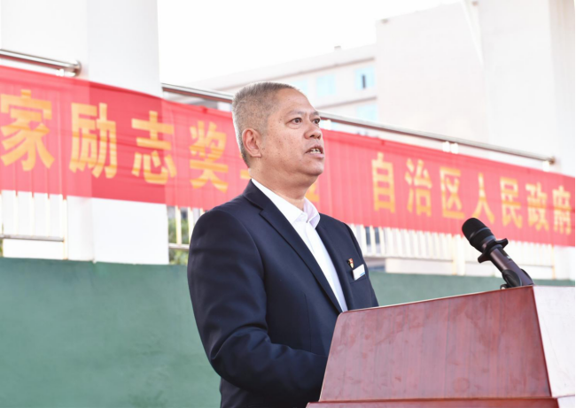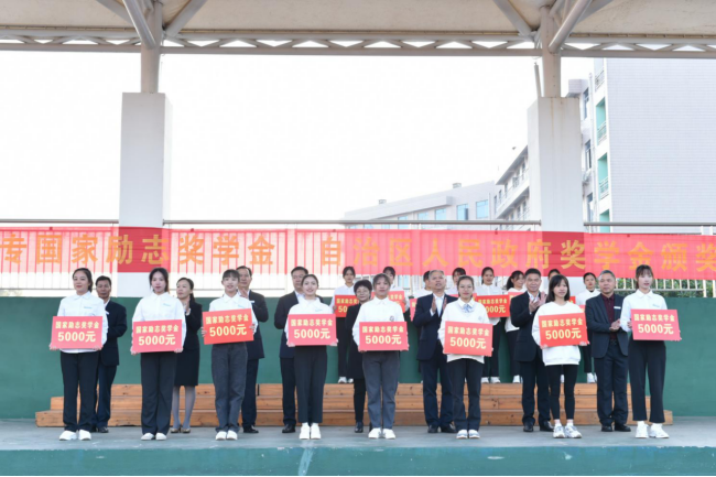梁燕清校长代表学校向获得国家励志奖学金、自治区人民政府奖学金的先进个人表示热烈的祝贺,并以李大钊先生的一段话与师生们共勉,“为世界进文明,为人类造幸福,以青春之我,创建青春之家庭,青春之国家,青春之民族,青春之人类,青春之地球,青春之宇宙,资以乐其无涯之生。”