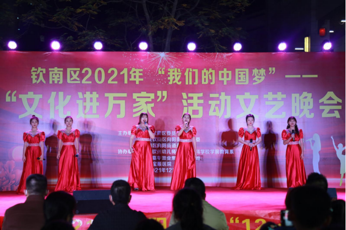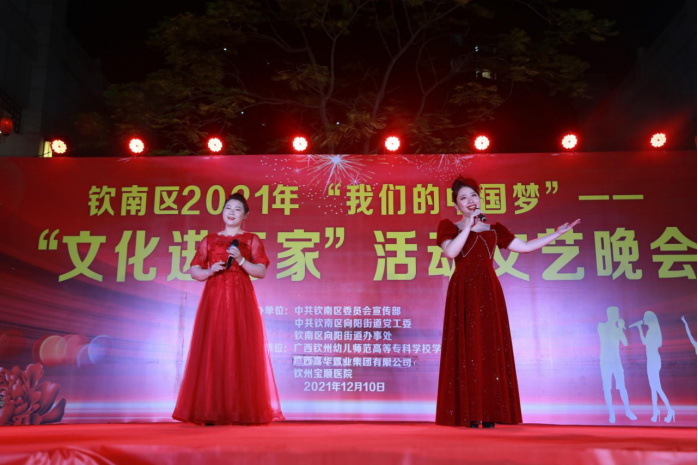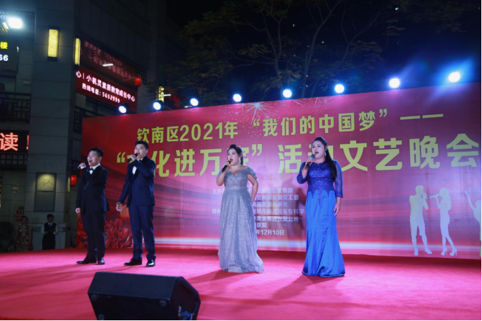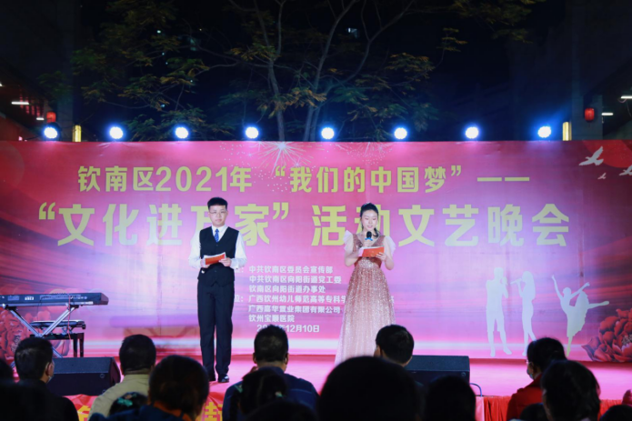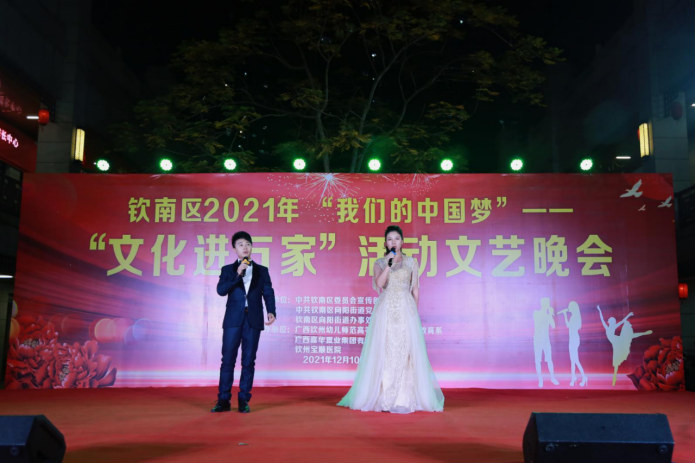 月牙弯弯,舞姿婀娜,歌声婉转悠扬。12月10日晚,由钦州市钦南区委宣传部主办、钦州幼专学前教育系承办的主题为“我们的中国梦——文化进万家”晚会在嘉华阆苑广场成功举办。中共钦南区委常委、宣传部部长谭弋飞,我校党委委员、副校长颜循泽出席晚会。