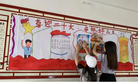 实习生积极参与到幼儿园、小学的环境创设当中,并协助学校举办各类活动,在学校各处留下她们辛勤的身影。