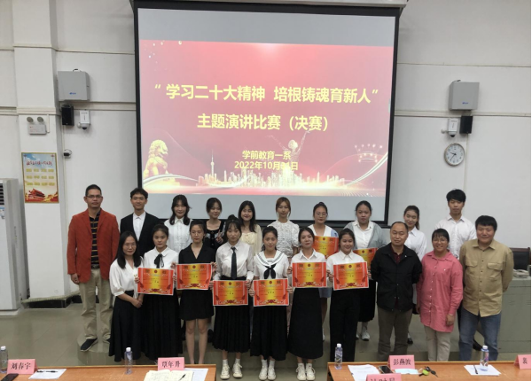 为进一步营造尊师重教的良好氛围,以实际行动学习贯彻党的二十大精神,近日,我校学前教育一系在5号教学楼西报告厅举办“学习党的二十大精神 培根铸魂育新人”主题演讲比赛(决赛),15名参赛选手展现靓丽风采。