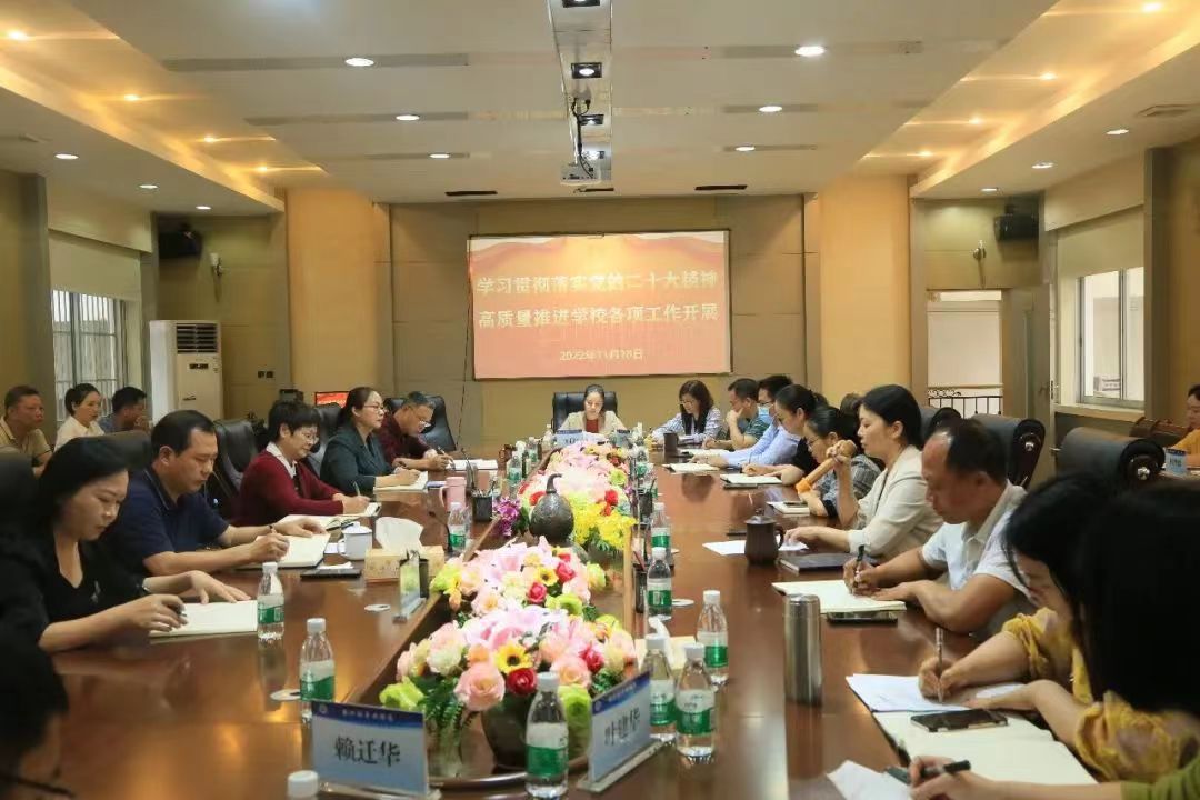 11月18日上午,我校召开党政联席会议,学习贯彻落实党的二十大精神,专题研究部署下半学期重点工作,高质量推进学校各项工作开展。市教育局党组成员、副局长,学校党委书记田茂群出席会议并讲话,党委副书记、校长卢红青主持会议。学校党委委员、副校长陈熙、颜循泽,副校长邓秋晓及全体中层领导参加会议。