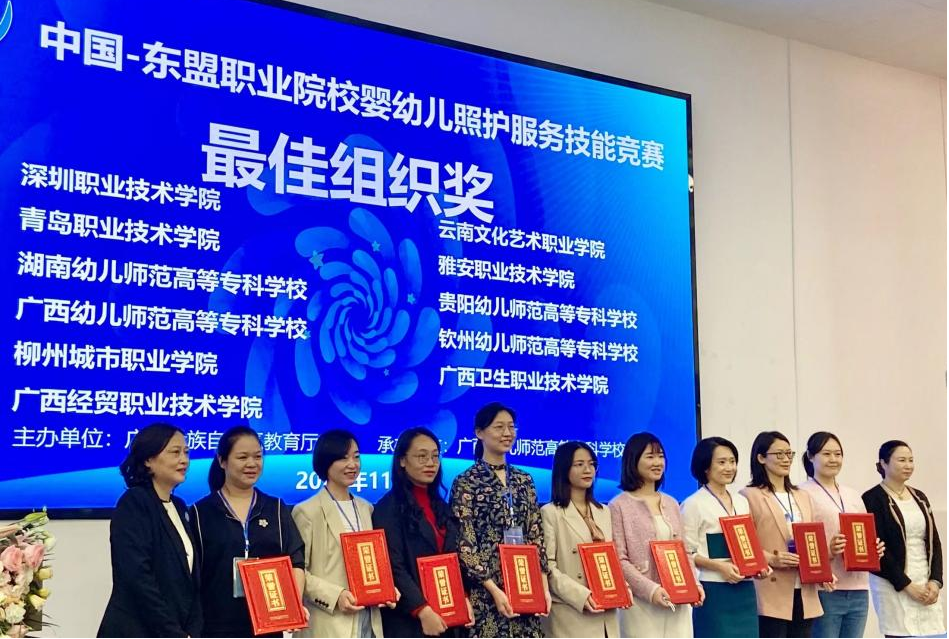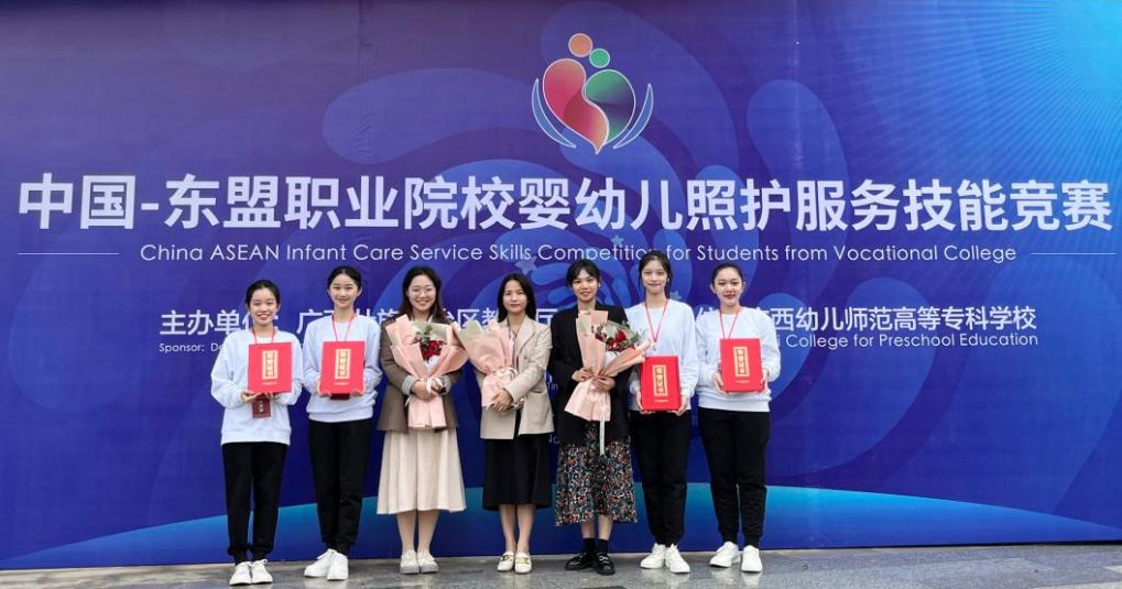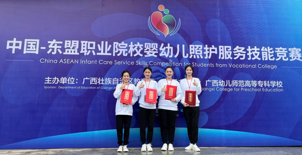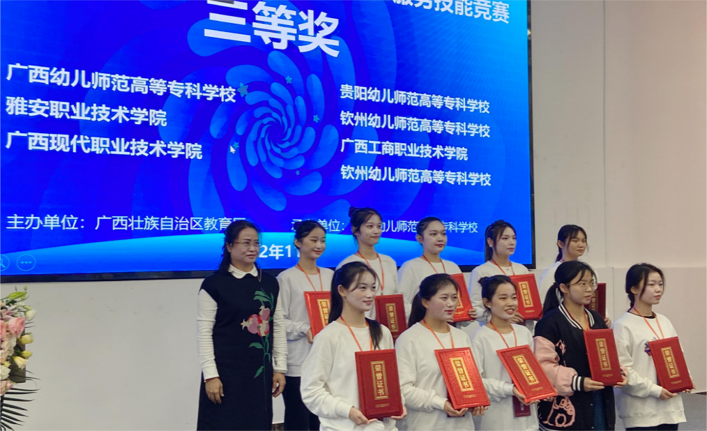 喜讯连连捷报传,钦幼学子展风采。2022年11月24日至26日,由广西壮族自治区教育厅主办的首届中国-东盟职业院校婴幼儿照护服务技能竞赛如期在南宁市举行。我校学前教育二系早期教育专业、婴幼儿托育服务与管理专业学生代表队首次参加本届比赛,经过与广西区内外多所职业院校的激烈角逐,最终两支学生代表队均荣获三等奖,学?;瘛白罴炎橹薄薄?/span>