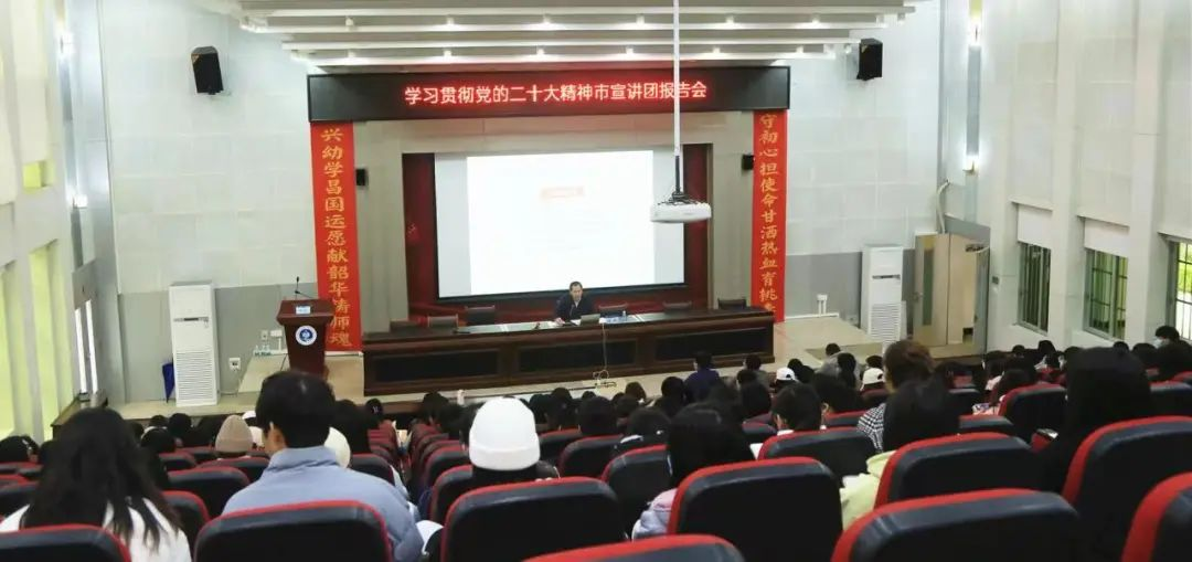 秋末冬初的钦州幼专校园内,一阵阵思想热流涌动不息。为深入学习宣传贯彻党的二十大精神,钦州幼专党委精心组织学习贯彻党的二十大精神宣讲报告会,把党的二十大精神传达到全校师生中,统一思想凝聚力量,以实际行动推动党的二十大精神在校园落地生根、开花结果。