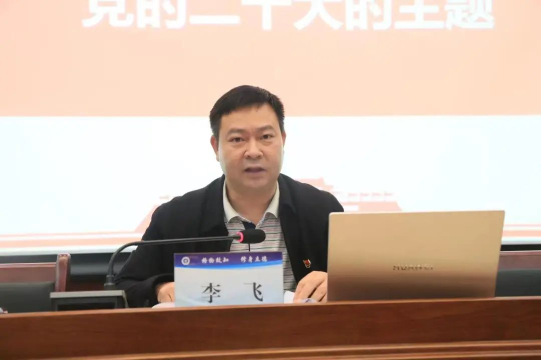 宣讲最后,李飞副书记寄语全体师生,强调要深入学习领会党的二十大精神,吃透精神实质,把握核心要义,紧密团结在以习近平同志为核心的党中央周围,高举中国特色社会主义伟大旗帜,全面贯彻习近平新时代中国特色社会主义思想,牢记空谈误国、实干兴邦,坚定信心、同心同德,埋头苦干、奋勇前进,为全面建设社会主义现代化国家、全面推进中华民族伟大复兴而团结奋斗。
