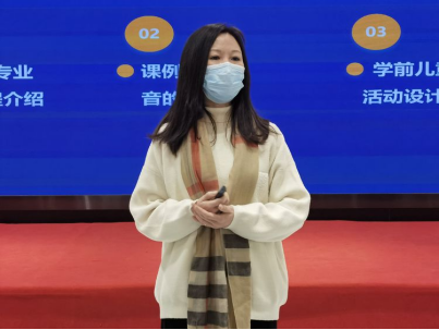 南宁师范大学学前教育系副主任、副教授——张媛,为全体学员作《展开幼儿音乐的翅膀----学前儿童音乐活动设计与指导》的专题讲座。张副教授对学前教育专业音乐类课程作简明的介绍,并以此为出发点,展开讲述学前儿童音乐活动的设计。最后,张副教授进行了无生授课,学员们从中切实感受到张副教授强调的“以幼儿为本的教学课堂”是如何形成的,语言优美,教态亲和,令人印象深刻。