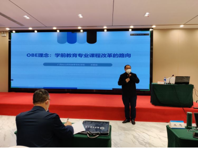 广西幼儿师范高等专科学校副教授——佘雅斌博士,为学员作《OBE理念:学前教育专业课程改革的路向》专题讲座。佘教授首先从“终身学习型社会的时代呼唤”“高质量教育发展的应然诉求”“师范专业认证的现实需求”三个方面阐述为什么要学习OBE教育理念。佘教授的讲座引经据典、干货满满,学员们不仅学习更新了OBE教育理念下专业课程改革的方法路径,还丰富了自身的教学知识体系,可谓是受益匪浅。