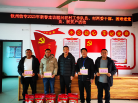 春节慰问送温暖,岁寒情深显关怀。新春将至,为大力弘扬中华民族传统美德,让广大党员、干部和人民群众深切感受到以习近平为核心的党中央的关怀和温暖,助力乡村振兴行动走深走实。2023年1月16日,钦州幼专党委委员、副校长庄礼训同志代表钦州幼专到坡子坪开展春节走访慰问驻村工作队员、村“两委”干部、困难老党员、脱贫户活动,深入坡子坪村先后为25户困难群众及驻村干部送上慰问金及慰问品,让困难群众感受到党和政府的温暖和关怀。