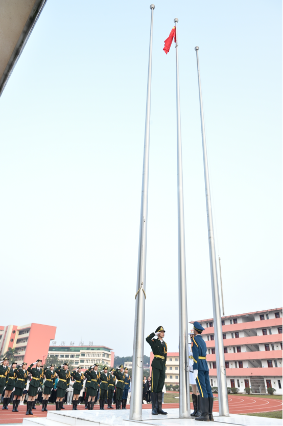 上午7时40分,鲜艳的五星红旗在庄严的国歌声中冉冉升起,全体师生迎着朝阳,面向国旗,肃立行礼,齐唱国歌,开学典礼正式开始。