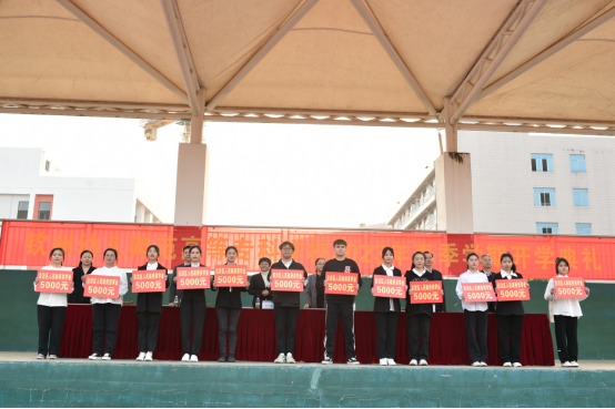 在颁奖环节,卢红青校长宣读了2021-2022学年国家奖学金、国家励志奖学金、2022-2023学年自治区人民政府奖学金的获奖学生名单。全体校级领导为获奖学生代表颁奖。