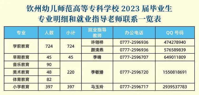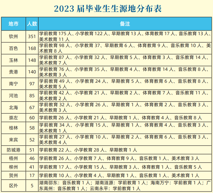 钦州幼儿师范高等专科学校2023届毕业生