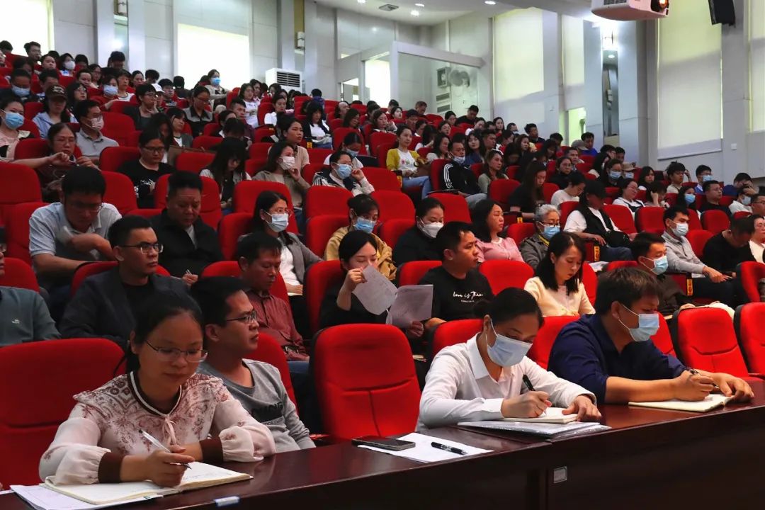 4月26日下午,我校召开师德师风建设水平提升动员会,部署安排下一阶段师德师风工作。市教育局党组成员、副局长,校党委书记田茂群,校党委副书记、纪委书记李飞,党委委员、副校长庄礼训、陈熙、颜循泽,正处长级领导干部梁燕清出席会议?;嵋橛尚5澄笔榧恰⑿3ぢ烨嘀鞒?。学校全体教职工参加会议。