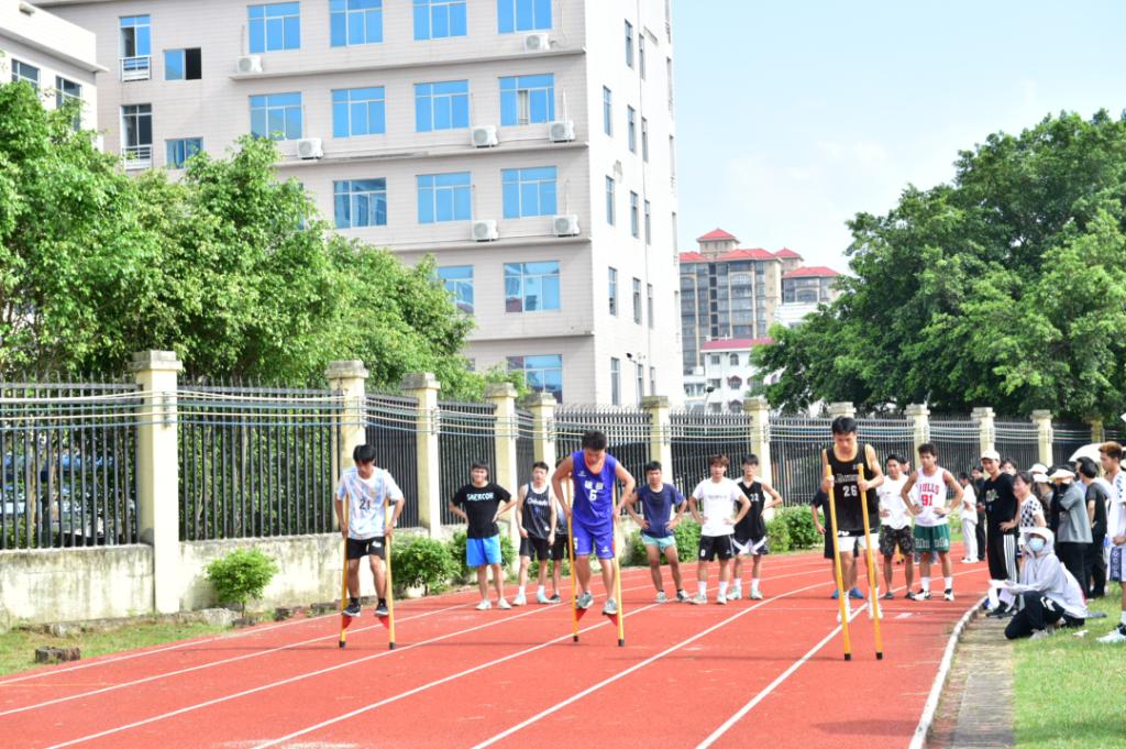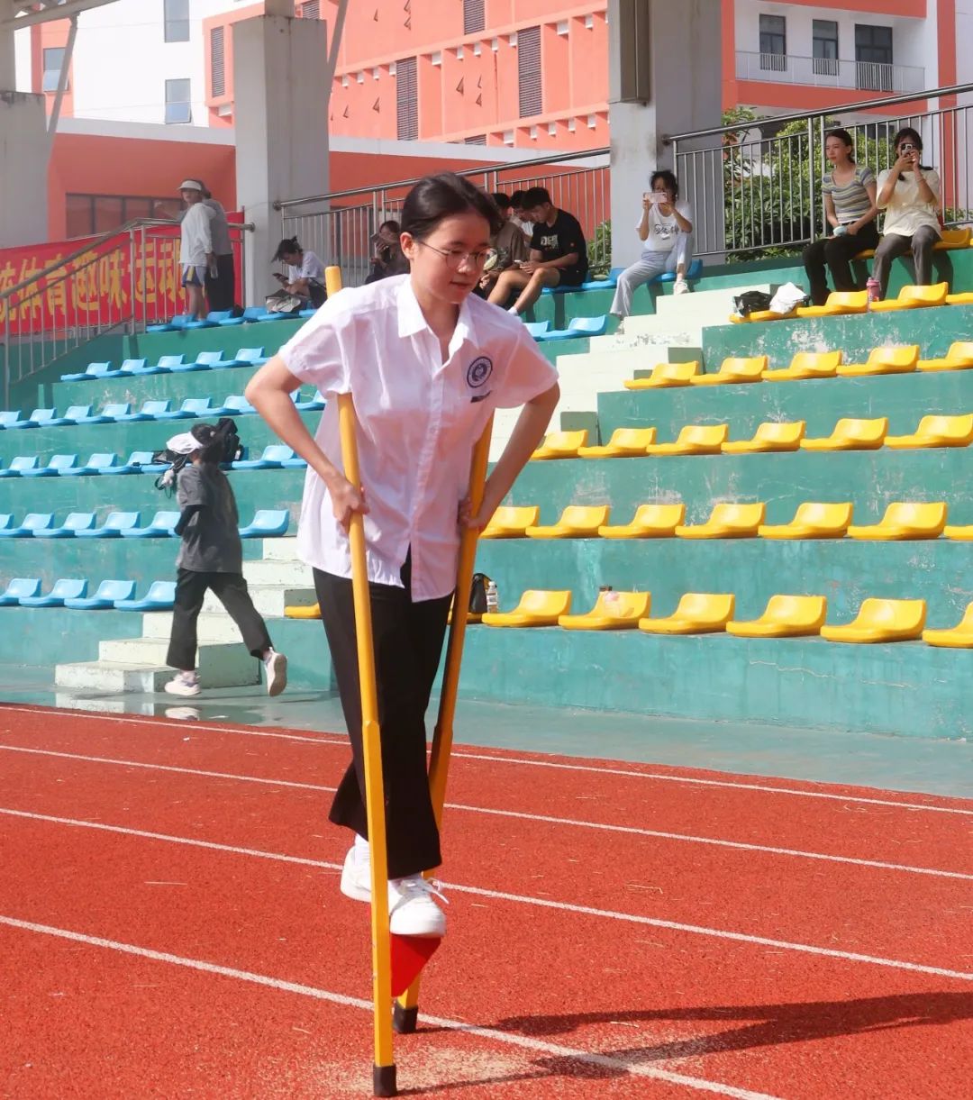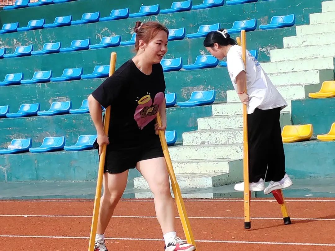 第一个项目是踩高跷,踩高跷是我国一项传统文化活动,有着悠久的历史。该项目参赛选手脚上需要绑着高跷工具,在赛道上折返接力,保持身体的平衡是比赛的关键。