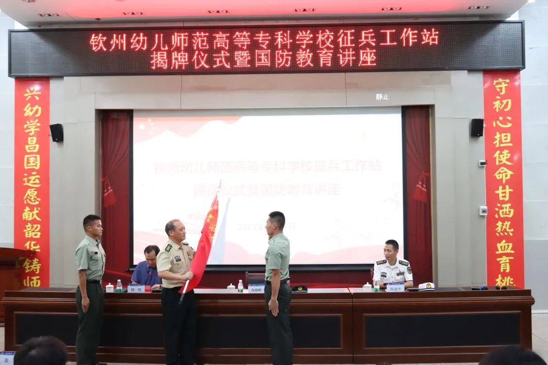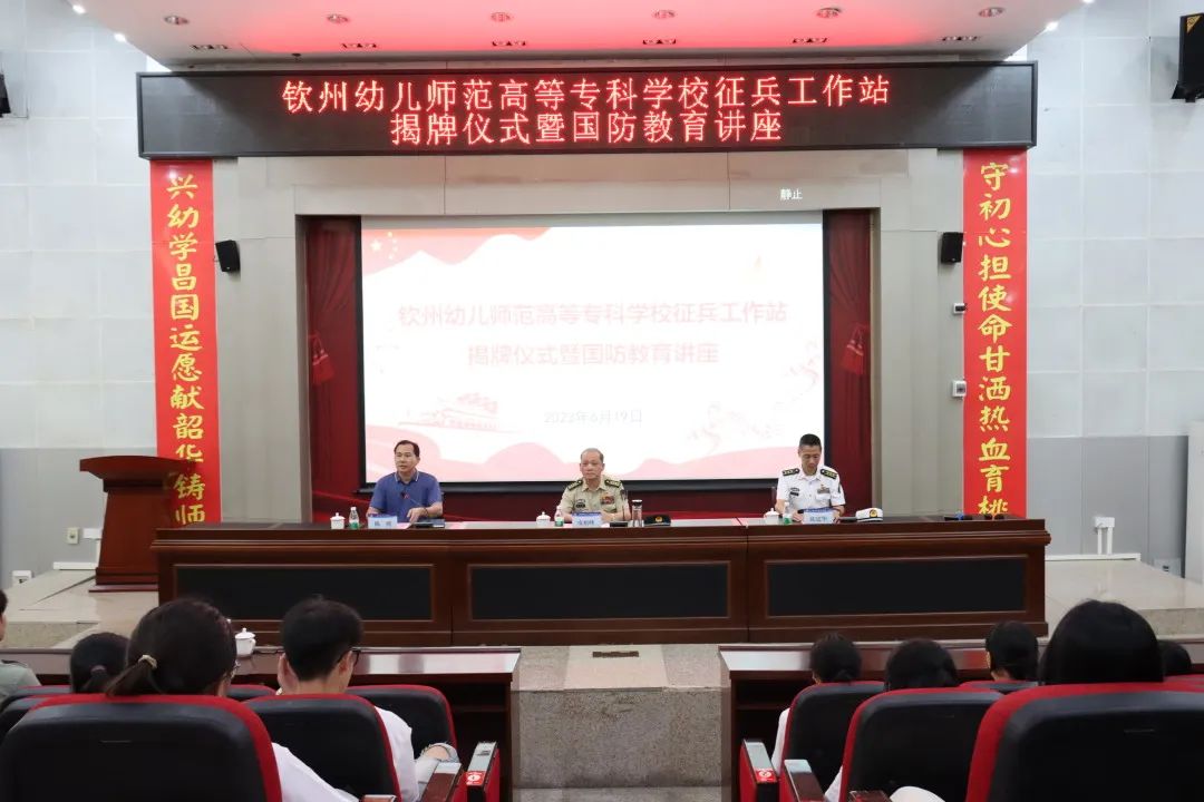 揭牌仪式上,军分区政委皮祖峰作致辞。他指出,征兵工作站揭牌仪式标志着钦州幼专的征兵工作步入崭新时期,这将进一步拓展学校的征兵工作平台,打通青年学生由“校门”到“营门”的直通链路,为征集高学历、高素质兵员提供有力支撑和可靠保证。他强调,学校要进一步加强征兵工作站的规范化建设,确保有专门机构、专职人员、专项经费和专用场地;要高标准完成上级赋予的大学生征集任务,持续为部队输送更多优质大学生士兵,为实现强国梦、强军梦作出新的更大贡献。兵役机关的同志要加强与学校的协调对接,军地始终保持思想同心、目标同向、行动同步,积极主动理顺工作关系,解决矛盾问题,在实践中研究探索符合学校实际的征兵方法路子。