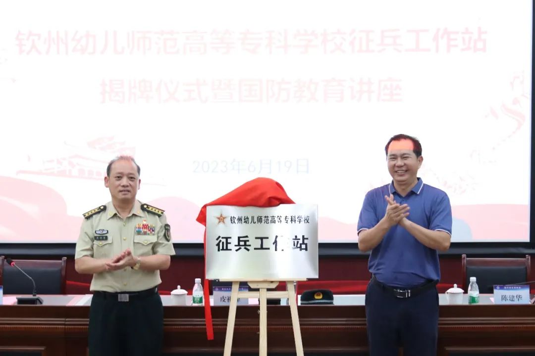 近日,我校举行征兵工作站揭牌仪式暨国防教育讲座。钦州军分区政委皮祖峰、动员处处长陈建华出席本次活动。活动由学校党委委员、副校长陈熙主持。