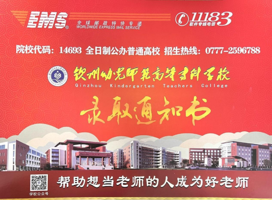 精致的设计,庄重、典雅、有气度,蕴含着浓溢的钦州文化传统气韵。这份鲜红,不仅是一份通知书,更是钦州幼专的一片心意。