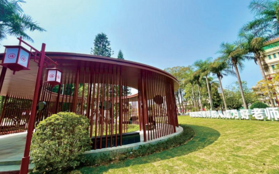 立体感鲜明的校园标志性建筑群,流畅舒展的波浪线,一种和谐而又优美的意韵,让人油然而生。一行鲜亮的文字,将钦州幼专的教育理念盛大地推送到了眼前。
