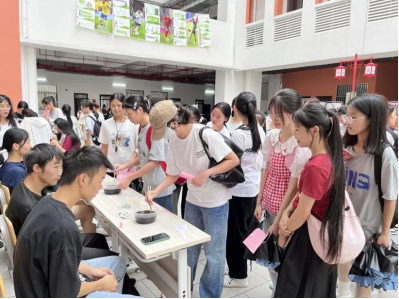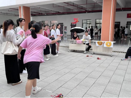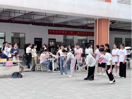 游园会上设有DIY手工区、游戏区等多个活动区域,玩趣味民俗小游戏,探索中秋节日风俗,现场人头攒动,好不热闹!每投进一个钱洞中,引来一阵喝彩,同学们风云际会,在游戏中各显身手,在喜迎佳节的欢乐氛围中共品民俗之美。