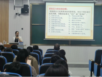 钦州幼专卢红青校长以“做一个快乐的幼儿教师——幼儿园教师心理健康漫谈”为题,从心理健康概述、幼儿教师心理健康现状、影响幼儿教师心理健康的主要因素、幼儿教师心理健康维护等四个方面展开讲解,通过案例深入分析,让学员们明白了应该如何调整自己的状态,成为一个快乐的幼儿教师。