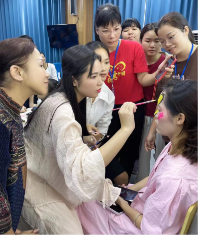 钦州幼专陈斌副教授为学员们讲解了化妆工具的类别、化妆的具体流程、小技巧以及注意事项,让学员们在实操中感受到了儿童舞台妆的魅力,收获了如何根据服装为孩子们选择好看的妆容的方法技巧。