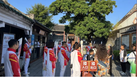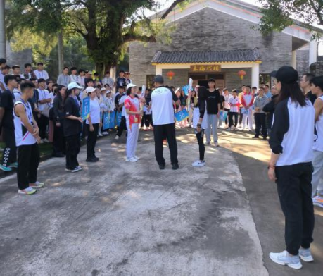 校团委老师带领火炬手和护跑手在火炬传递钦州站起跑仪式现场