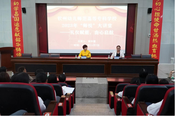 为了进一步提升教师礼仪素养,塑造文明、儒雅、有礼的良好教师形象,同时增强学生的职场礼仪意识,提升学生就业竞争力,打造内外兼修的师生团队,11月7日下午,我校在5号教学楼东报告厅举办2023年“师悦大讲堂”职场礼仪专题讲座。讲座由学校党委副书记、校长卢红青主持,我校各处室、各教研室教师代表以及人文与管理学院2021级行政管理、应用英语专业学生共300余人参加了活动。