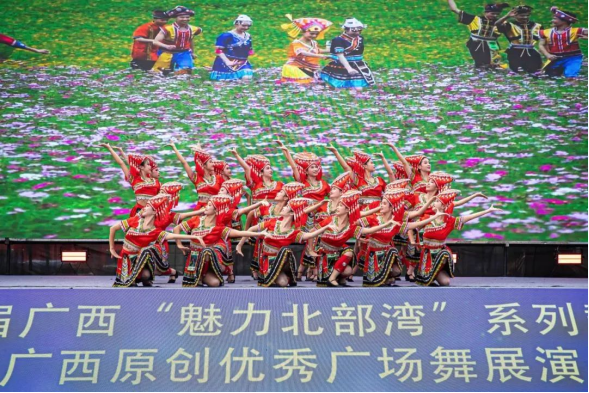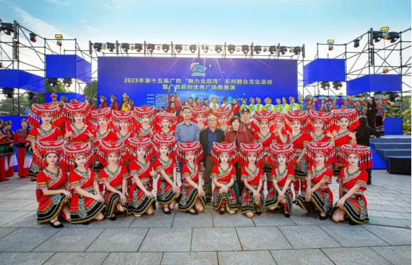 为深入学习贯彻党的二十大精神,弘扬社会主义核心价值观,由广西壮族自治区文化厅及南宁市人民政府主办,广西壮族自治区群众艺术馆等单位承办的2023年第十五届广西“魅力北部湾”系列群众文化活动暨广西原创广场舞展演活动于2023年11月18-19日在南宁举行,受钦州市群众艺术馆邀请,我校体育与艺术学院舞蹈表演专业、体育教育专业部分师生参与本次活动演出。