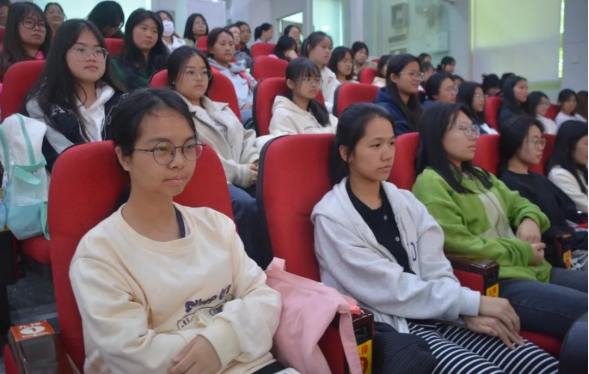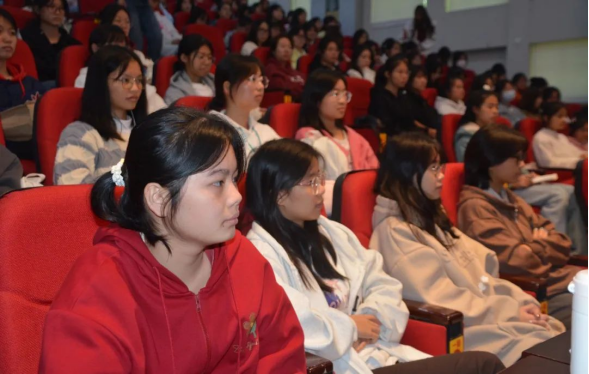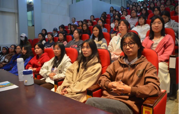 梁春花作《跟党奋进新征程 巾帼建功新时代——做新时代中国女性》主题宣讲,带领大家共同学习习近平总书记同全国妇联新一届领导班子成员集体谈话时的重要讲话精神、丁薛祥代表党中央所作的致词、黄晓薇同志在中国妇女十三大上的工作报告、闭幕会上谌贻琴的闭幕讲话和沈跃跃的讲话等精神,传达了中国妇女十三大的主要会议精神,重温了党中央对广大妇女的殷切希望,并分享了大会盛况、广西代表团代表的履职情况和会议期间的所见所闻、所思所感。她勉励广大女大学生要更加紧密地团结在以习近平同志为核心的党中央周围,跟党奋进新征程,巾帼建功新时代,做新时代女性,树牢志向,做“两个确立”的拥护者;勇于担当,做伟大事业的建设者;肩负责任,做文明风尚的倡导者;锤炼本领,做敢于追梦的奋斗者,为全面建设社会主义现代化国家、全面推进中华民族伟大复兴谱写“半边天”更加绚丽的华章。