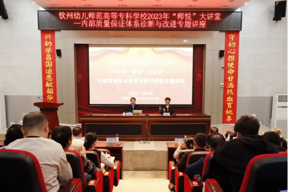 为提升学校内部质量保证体系诊断与改进工作,持续提高人才培养质量,确保教学诊断与改进工作落到实处,11月22日下午,我校“师悦大讲堂”特别邀请广西工业职业技术学院党委书记韩志刚到校做诊改专题讲座。市教育局党组成员、副局长,学校党委书记田茂群主持讲座。全体校级领导、中层领导、专任教师、辅导员、各处室具体负责诊改工作人员聆听了讲座。