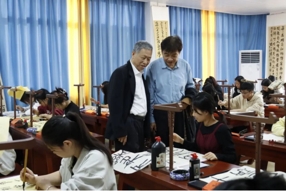 最后,老干部一行人到图书馆与师生进行了绘画、书法交流活动,现场挥毫泼墨。