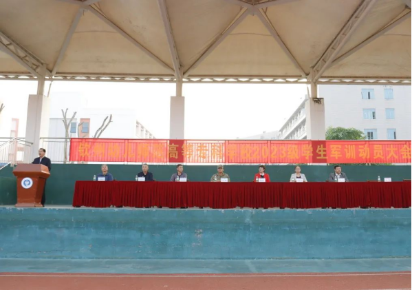 11月27日上午,我校2023级学生军训动员大会在运动场隆重举行。市教育局党组成员、副局长,学校党委书记田茂群,学校党委副书记、校长卢红青,钦州军分区参谋冯超,学校党委副书记、纪委书记李飞,学校党委委员,副校长庄礼训、陈熙、颜循泽,正处长级领导干部梁燕清出席动员大会。大会由副校长陈熙主持。