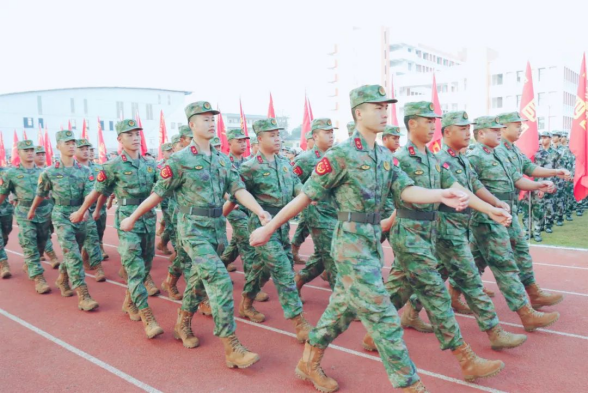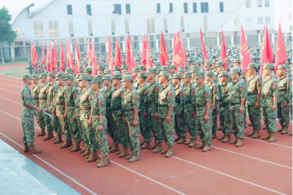 动员大会在热烈掌声中落下帷幕,军训团迅速投入到紧张严肃的训练中。