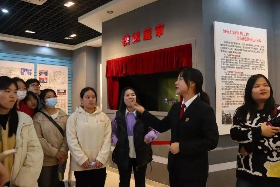 在活动中,学生先后参观市中级人民法院文化展厅、诉讼服务大厅,聆听宪法、民法典的宣讲,旁听行政审判庭审等。