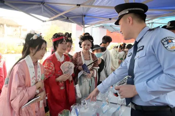 当天,近200名身穿汉服华衣的汉服爱好者与民警、禁毒社工从永福广场出发,途经占鳌巷、中山路与平南古渡,最终抵达宣传活动现场——广州会馆,整个队伍井然有序,大家仪态端庄,手提禁毒宣传、汉服文化标语,为沿途路人和商户派发禁毒知识小册子,宣传禁毒知识。同时,在广州会馆开展汉服走秀助力禁毒活动,吸引了1000多名群众驻足观看,受到了现场群众的一致好评。
