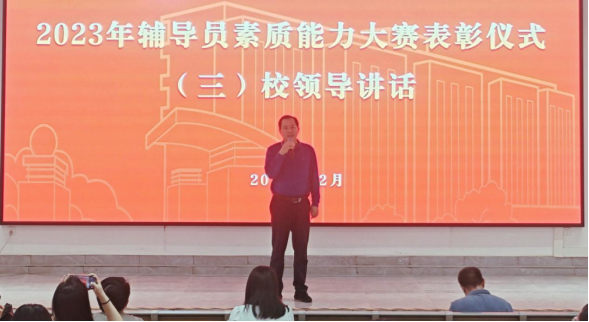 为深入学习贯彻习近平新时代中国特色社会主义思想和党的二十大精神,全面落实立德树人根本任务,进一步加强学校辅导员队伍专业化、职业化建设,全面提高辅导员综合素质和业务能力,充分展示辅导员敬业精神和育人风采,12月9日,我校在综合楼111小剧场举办2023年辅导员素质能力提升训练营暨辅导员素质能力大赛决赛。