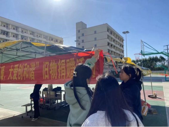 11月13日,活动正式开始拉开序幕,志愿者在学校食堂旁篮球场设立捐赠点,每天下午16:00—18:00定期值班,接收师生们的旧物。